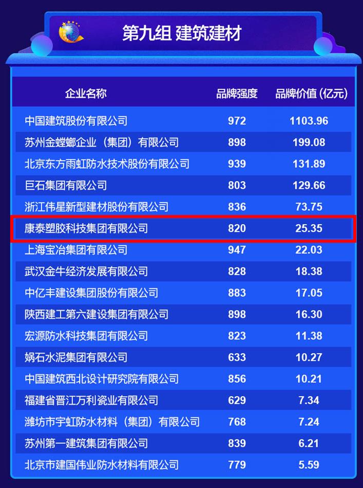 5月10日,中國(guó)品牌建設(shè)促進(jìn)會(huì)發(fā)布了“2020年中國(guó)品牌價(jià)值榜單”??堤┧苣z品牌價(jià)值達(dá)到25.35億元,升幅88%,再創(chuàng)新高,有力彰顯了“康泰”品牌的強(qiáng)度、知名度、美譽(yù)度。