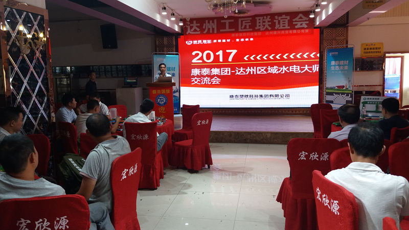 6月28日下午,康泰家裝水工聯(lián)誼會在達(dá)州南城宏欣源酒店召開。達(dá)州區(qū)域水電工、重點(diǎn)經(jīng)銷商等40余人參加了本次會議??堤┝闶奂已b事業(yè)部部長趙謙參加會議,并從企業(yè)實(shí)力、產(chǎn)品系列、五心管家、小康師傅等方面闡述了康泰零售家裝理念和服務(wù)體系。