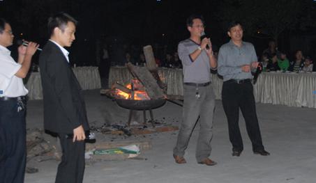 晚宴后,大家紛紛來到戶外,圍著篝火舉杯歡唱,在主持人幽默詼諧的帶領(lǐng)下,參與互動的員工熱情高昂?;顒右恢背掷m(xù)到晚上10點,大家仍然意猶未盡。