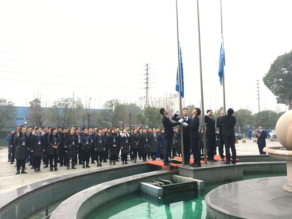? ? ??2月13日,新年開(kāi)工后的第一次早會(huì)上,康泰集團(tuán)在辦公樓廣場(chǎng)上舉行了隆重的新年升旗儀式。集團(tuán)母公司中高層管理干部、車間主任、行政后勤人員等參加儀式。