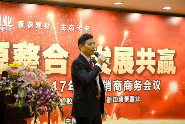 ? ? ? ?林總裁在講話中圍繞2025智能制造、智能化的不斷發(fā)展,以及傳統(tǒng)制造企業(yè)面臨的挑戰(zhàn)等話題,從中國(guó)經(jīng)濟(jì)新常態(tài)和轉(zhuǎn)型升級(jí)的大背景、大環(huán)境,重點(diǎn)回顧了康泰集團(tuán)2016年的取得的成績(jī)、涌現(xiàn)的亮點(diǎn),總結(jié)分析了經(jīng)銷(xiāo)商存在的不足。林總裁表示,2016年度,在市場(chǎng)需求量下滑的情況下,康泰集團(tuán)準(zhǔn)確清晰的實(shí)施穩(wěn)定民建、發(fā)展市政等舉措,積極應(yīng)對(duì)市場(chǎng)挑戰(zhàn)與洗牌,全年基本完成經(jīng)營(yíng)目標(biāo)。為穩(wěn)定民建、發(fā)展市政,資源儲(chǔ)備等后續(xù)發(fā)展打下了良好基礎(chǔ)。林總裁強(qiáng)調(diào),雖然我們?nèi)〉昧艘恍┏煽?jī),但也要認(rèn)識(shí)到自身存在的不足。比如,母子公司資源共享、業(yè)務(wù)挖掘、做寬做深不夠、產(chǎn)品質(zhì)量細(xì)節(jié)提升與保障不足、產(chǎn)品研發(fā)的市場(chǎng)化應(yīng)用性不足、經(jīng)銷(xiāo)商思維轉(zhuǎn)型等問(wèn)題都需要引起重視。2017 是機(jī)遇與挑戰(zhàn)并存的一年,也是大有可為的一年。本次會(huì)議不僅進(jìn)一步向全體經(jīng)銷(xiāo)商傳遞了康泰集團(tuán)的戰(zhàn)略和營(yíng)銷(xiāo)方針,而且也為大家來(lái)年的發(fā)展明確了目標(biāo),指明了方向。