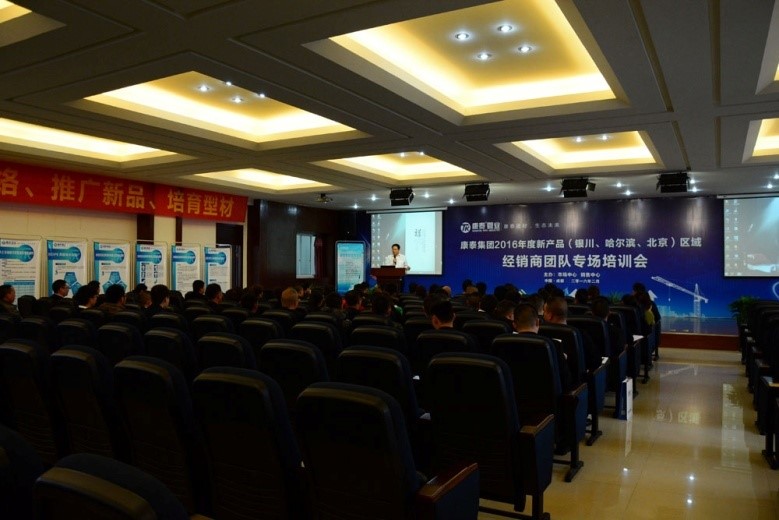 ? ? ? ?2月27日,康泰集團2016年度新產品(銀川、北京、哈爾濱)區(qū)域經銷商團隊專場培訓會在集團總部召開。本次會議是由市場中心主辦,銷售中心、技術研發(fā)中心、人力資源中心協(xié)辦。來自銀川、北京、哈爾濱區(qū)域的經銷商及其團隊共計60余人參加了本次培訓。