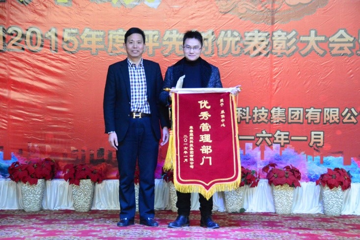 圖為林總裁在年會(huì)上為獲得優(yōu)秀管理部門頒獎(jiǎng)