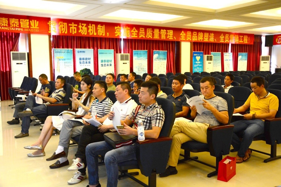 ?????? 培訓(xùn)在集團五樓多功能室舉行,本次培訓(xùn)共包含康泰新產(chǎn)品講解、檢查井安裝知識、型材產(chǎn)品知識三部分內(nèi)容,旨在通過康泰新產(chǎn)品知識講解,讓客戶及員工了解并掌握新產(chǎn)品賣點,提升新產(chǎn)品推廣力度??堤┘瘓F技術(shù)研發(fā)中心副總監(jiān)周祖明和產(chǎn)品經(jīng)理王成城,市場中心新產(chǎn)品推廣經(jīng)理趙謙,型材事業(yè)部蘇顯根對本次培訓(xùn)的具體內(nèi)容進行了講解。