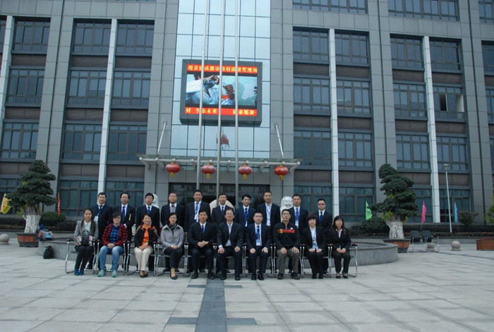 圖五:集團(tuán)高層與評(píng)審小組在辦公大樓前合影留念
