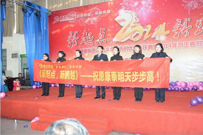 ?? “金蟒穿云去?,紫騮踏雪來”,光陰似箭,日月如梭,轉(zhuǎn)瞬間,我們就已經(jīng)告別了波瀾壯闊、碩果累累2013,迎來揚帆起航、激情澎湃的2014。值此歲末年終,辭舊迎新之際,2014年1月21日,康泰集團以“新起點、新跨越”為主題的2013年評先樹優(yōu)表彰大會暨2014年迎新春聯(lián)誼會在美麗的東亭園林大酒店舉行,來自集團公司全體職工以及部分管理人員家屬和特邀嘉賓超過1000余人參加了此次盛會,大家在喜慶祥和、熱烈、歡快的節(jié)日氣氛中歡度盛會、共享晚宴。