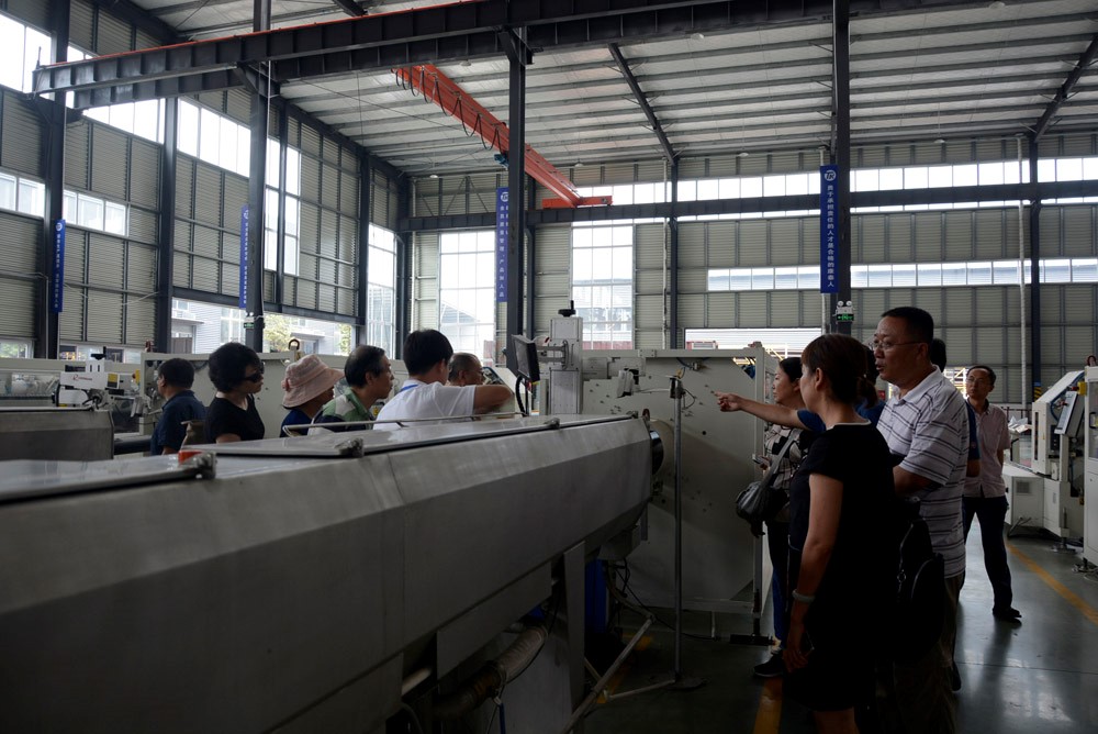 應(yīng)康泰集團(tuán)的盛情邀請,6月30日下午,由總工程師、 副總工程師等設(shè)計院專家組成的20人考察團(tuán)蒞臨康泰考察、交流指導(dǎo)工作。康泰集團(tuán)副總裁張文霖,銷售總監(jiān)何朝暉,技術(shù)總監(jiān)張雙全熱情歡迎各位領(lǐng)導(dǎo)、專家的蒞臨并陪同參觀康泰集團(tuán)線管車間、PVC管材車間、管件車間、聚烯烴車間和實驗室等。