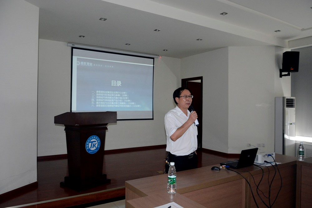 研發(fā)總監(jiān)張雙全重點推介了康泰的海綿城市系統(tǒng)和康泰獨家研發(fā)、國內(nèi)首創(chuàng)的MPVE?系統(tǒng)。講解中,張總從設(shè)計理念、開發(fā)背景、技術(shù)特點、產(chǎn)品原料、生產(chǎn)設(shè)備安裝操作、性能對比、實驗分析、應(yīng)用領(lǐng)域、工程案例應(yīng)用等方面分別作了詳實介紹。同時介紹了已經(jīng)取得的專利成果,闡述了以市場需求、國家政策和先進(jìn)技術(shù)為導(dǎo)向,生產(chǎn)一代、研發(fā)一代、設(shè)計一代,內(nèi)部實行產(chǎn)品標(biāo)準(zhǔn)化與技術(shù)、工藝配方創(chuàng)新的研發(fā)理念。