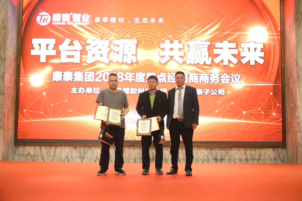 汶川加林建材銷售有限公司、四川鴻凱新型建材有限公司、杭州顧地建材有限公司分獲康泰集團(tuán)“2017年度增量第一名、第二名、第三名”;