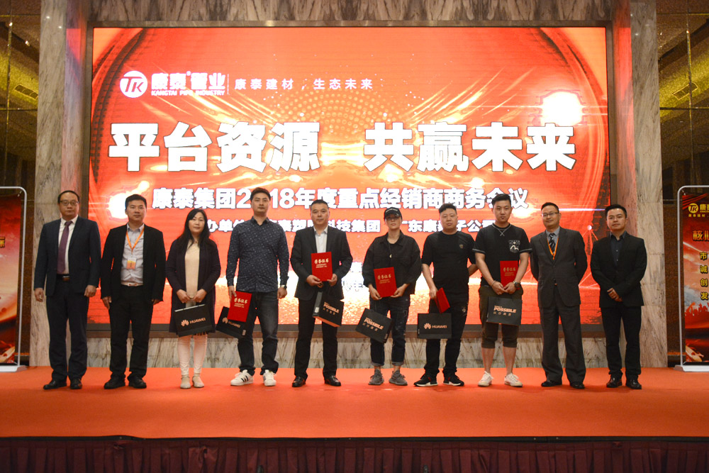 成都市春林科技有限公司、四川康鑫宏泰貿(mào)易有限公司、懷化市華勝管道工程有限公司分獲康泰集團(tuán)“2017年度銷量冠軍、亞軍、季軍”;