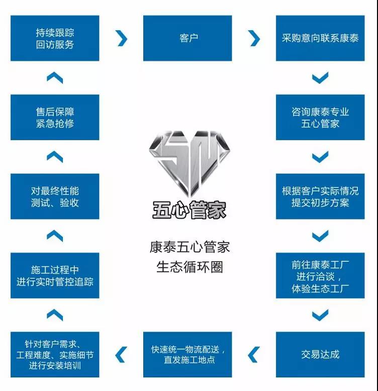 電工管道除安全質(zhì)量需要嚴(yán)格把關(guān)外,產(chǎn)品售后也是一大重點(diǎn)。良好的售后不僅能為安全增添一層保護(hù)膜,更能為家庭生活免去了安裝后的種種擔(dān)憂。因此,康泰塑膠為完善產(chǎn)品系統(tǒng)特意推出一站式服務(wù)“五心管家”,他們投入大量資源建立了一套健全完善的售后服務(wù)體系,不僅做到在產(chǎn)品質(zhì)量上嚴(yán)格篩選讓客戶放心外,在售后的回訪、服務(wù)中也以最大可能性避免安全隱患,讓客戶安心??堤漠a(chǎn)品的購(gòu)買、實(shí)地安裝和售后都極具專業(yè)化的為用戶提供了全程的服務(wù)支持,他們的每一個(gè)步驟都以用戶為中心,為客戶爭(zhēng)取利益最大化。這樣的措施不但建立了與消費(fèi)者之間溝通的橋梁,也增強(qiáng)了與用戶之間的信任。