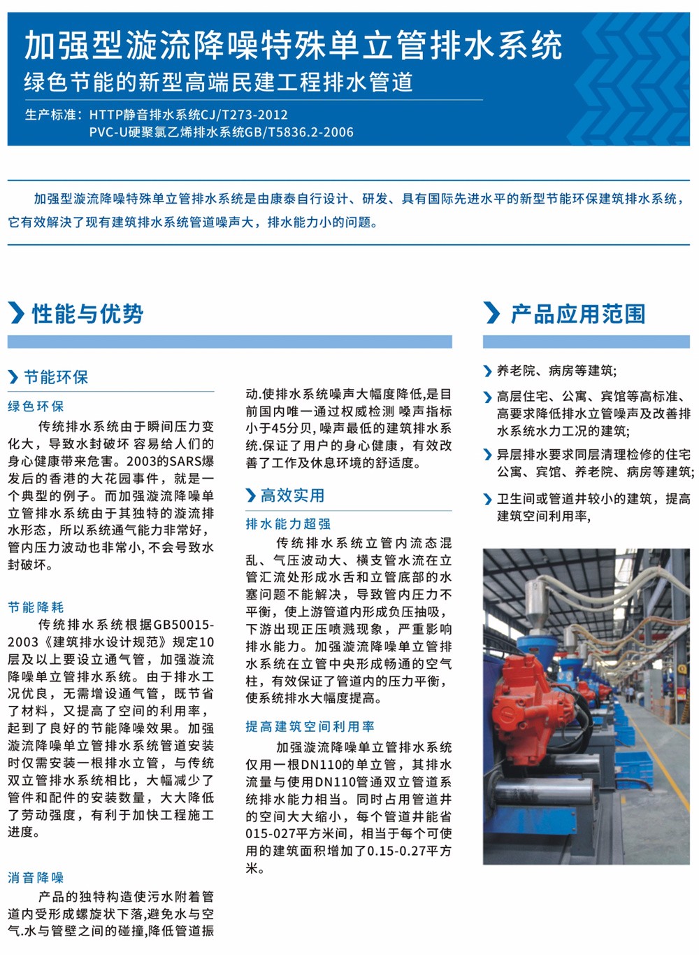 生產(chǎn)標(biāo)準(zhǔn):HTPP靜音排水系統(tǒng)CJ/T273-2012; PVC-U硬聚氯乙烯排水系統(tǒng)GB/T5836.2-2006